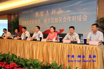 2012年6月30日,“聚智高新区”国家大学科技园•烟台高新区合作对接会隆重举行,这是科技部和教育部推动国家大学科技园与新升级国家高新区开展校地合作的有效手段,也是全国洽谈对接系列活动的第一站。科技部高新司巡视员耿战修,科技部高新司工业发展处处长刘志春,教育部科技司高新处副处长舒华,山东省科技厅高新处处长毕建明,市委常委、副市长蔡国华,市政协副主席、高新区工委书记刘洪波,区工委副书记、管委常务副主任、中俄基地管委主任季善亭,管委副主任毕秋军、李传强、刘有根、王世波,工委委员、党群工作部部长李建运,27家国家大学科技园代表,以及区直有关部门负责同志等约200人参加会议。